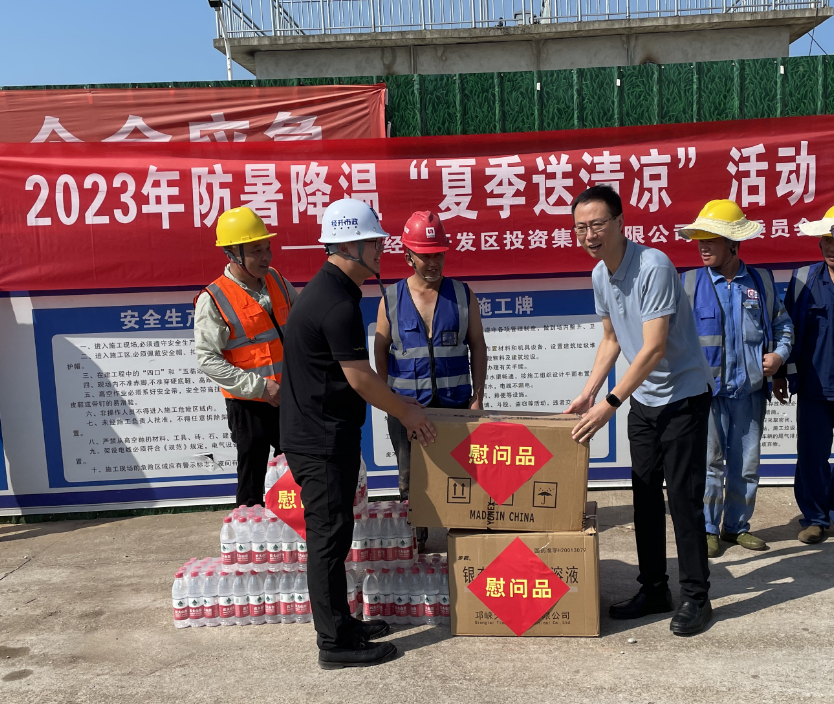 炎炎夏日,高溫預(yù)警不斷,集團公司一線員工依然精神飽滿、斗志昂揚,奮戰(zhàn)在各自崗位上。 為做好項目現(xiàn)場人員防暑降溫工作,保障一線員工身心健康,8月10日,市經(jīng)投集團黨委書記、董事長何為深入項目施工現(xiàn)場,帶領(lǐng)集團公司工會先后到污水處理廠(一期)技術(shù)改造工程、河西化工園區(qū)消防取水碼頭建設(shè)工程等項目施工現(xiàn)場,慰問奮戰(zhàn)在一線的員工。 在污水處理廠(一期)技術(shù)改造工程施工現(xiàn)場,何為詳細詢問了解項目進展情況、現(xiàn)場高溫作業(yè)下的防暑降溫措施,關(guān)切現(xiàn)場工作難題,叮囑大家提高安全保護意識,注意防暑降溫。何為強調(diào),項目施工單位在搶抓工期的同時,要合理安排作息時間,扎實做好防暑降溫工作,創(chuàng)造良好安全的施工條件,確保工人們以更好的狀態(tài)投入到項目建設(shè)中。 何為要求,項目管理組要緊盯目標任務(wù),圍繞既定目標,強化責任擔當,狠抓工作落實,確保項目建設(shè)按計劃有力有序推進;要繃緊安全之弦,在統(tǒng)籌安全生產(chǎn)和工程質(zhì)量、施工進度的前提下,優(yōu)化細化施工方案,強化現(xiàn)場施工管理,快速高效推進項目建設(shè),推動項目早竣工、早投產(chǎn)、早見效;要堅持高水平規(guī)劃、高標準建設(shè),嚴把工程質(zhì)量關(guān),既算經(jīng)濟賬、也算環(huán)保賬,打造綠色工程、精品工程,做到項目與周邊景觀環(huán)境有機協(xié)調(diào)、相得益彰。 此次慰問活動極大地鼓舞了一線員工士氣,大家紛紛表示要以更加飽滿的熱情和十足的干勁,戰(zhàn)高溫、斗酷暑,保質(zhì)保量完成各項建設(shè)任務(wù)。 |